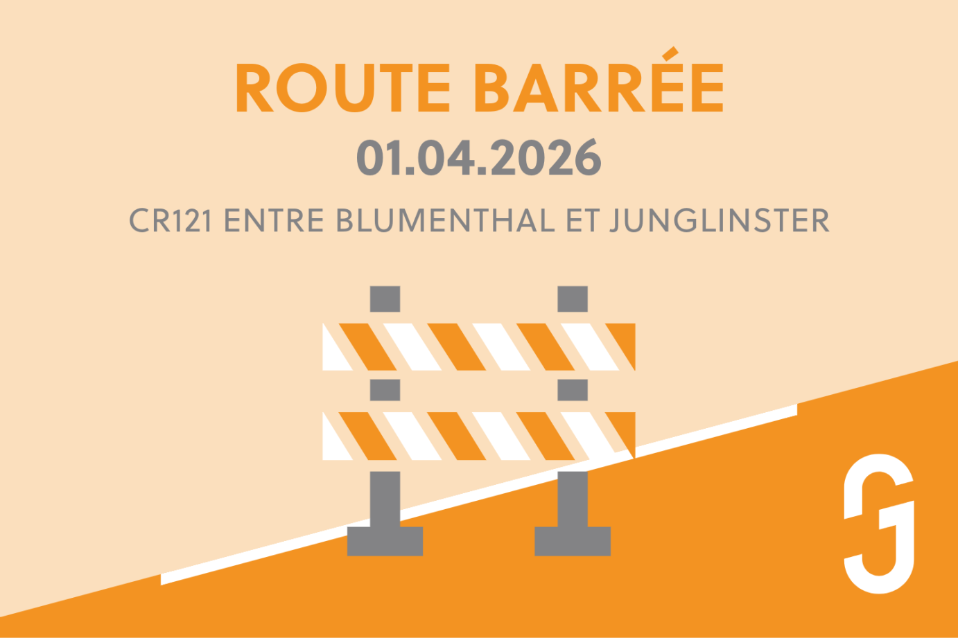 01.04.2024: Route barrée - CR121 entre Blumenthal et Junglinster