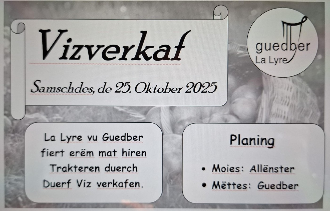 Comme chaque année, l'orchestre mandoliniste "La Lyre" Godbrange viendra vendre du "Viz" (jus de pommes) à Godbrange et Altlinster, samedi, le 25 octobre2025
