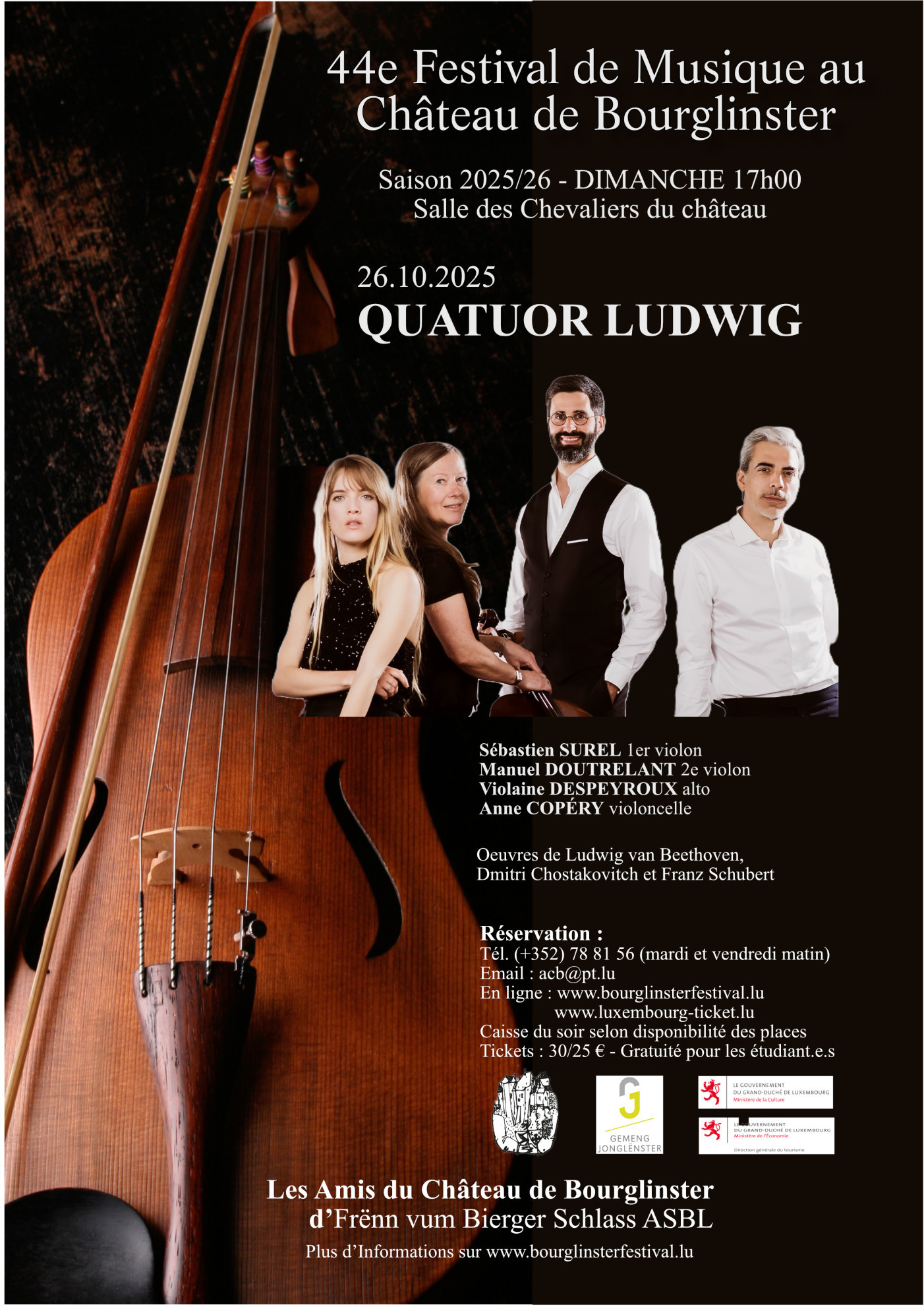 Les Amis du Château de Bourglinster ont le plaisir de vous inviter au prochain concert de la nouvelle saison 2025/26