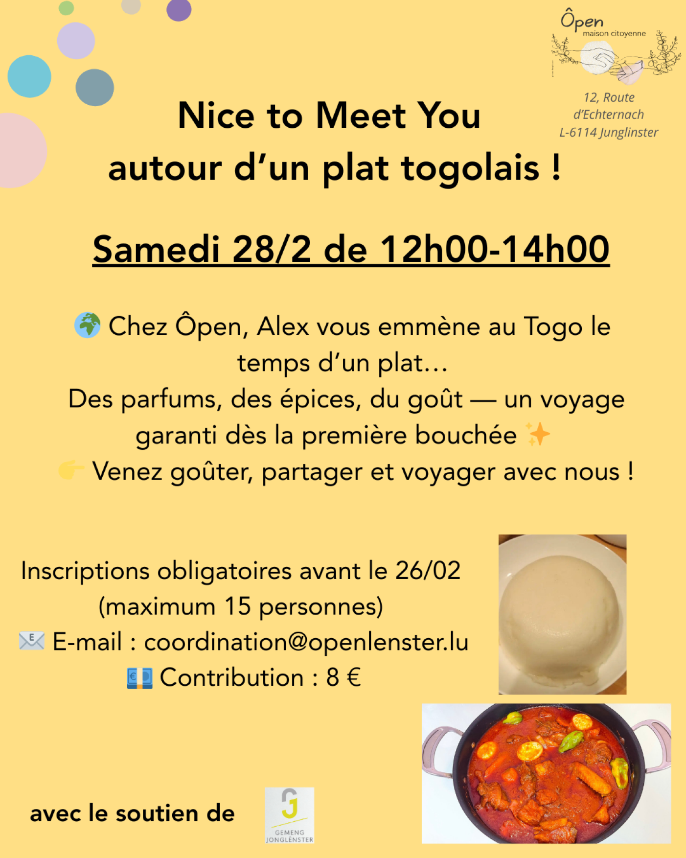 👉 Venez apprendre à cuisiner ce plat togolais aux côtés d’Alex, de 10h à 12h chez Ôpen.